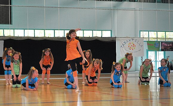 Anmerkung:Neben den klassischen Standard- und Lateinamerikanischen Tänzen wird im Landesverband auch Jazz- & Modern Dance getanzt. Hier die JMD-Formation Tarantella vom TC Schwarz-Silber Halle, die 2014 und 2015 jeweils Zweite im Ligagebiet Süd-Ost II (Sachsen-Anhalt, Sachsen, Thüringen) in der Liga der bis 11-Jährigen wurden. Foto: privat