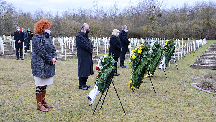 © ltlsa/smüHolocaustgedenktag 2024 in MagdeburgMit zwei Kranzniederlegungen gedenkt der Landtag der Opfer. Die zentrale Gedenkveranstaltung wurde nachgeholt.