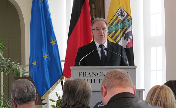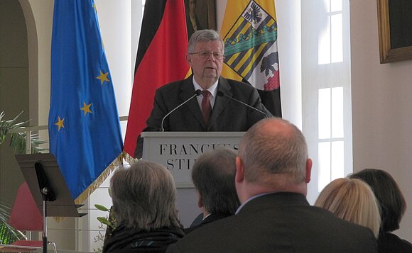 Anmerkung:Prof. Dr. Helmut Obst sprach als Vorsitzender des Kuratoriums der Franckeschen Stiftungen in Halle (Saale). Foto: Stefan Müller