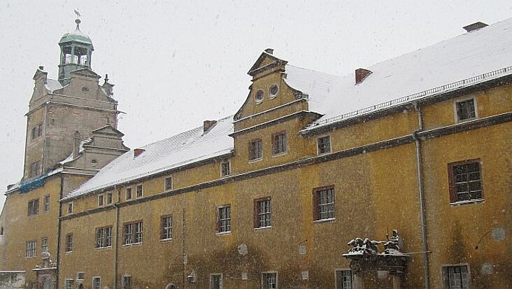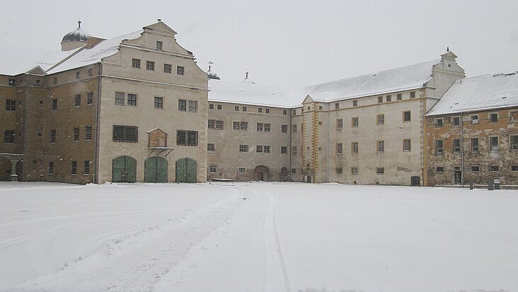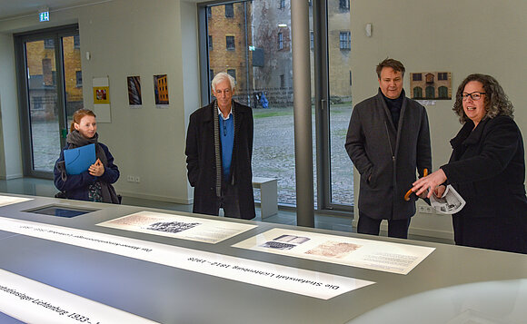 Anmerkung:Rundgang durch die Gedenkstätte KZ Lichtenburg: Prof. Moshe Zimmermann (2.v.l.), Dr. Kai Langer (M.) und Gedenkstättenleiterin Melanie Engler (r.) Foto: Ulrich Grimm