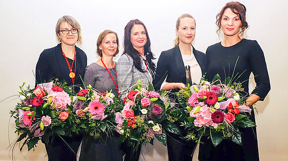 Die Gewinnerinnen des Unternehmerinnenpreises 2018 Sachsen-Anhalt (v.l.n.r.): Sarah Werner, Ilka Malek, Claudia Zeidler, Susanne Seidel und Saskia Moser. Foto: Steffen Lehmann