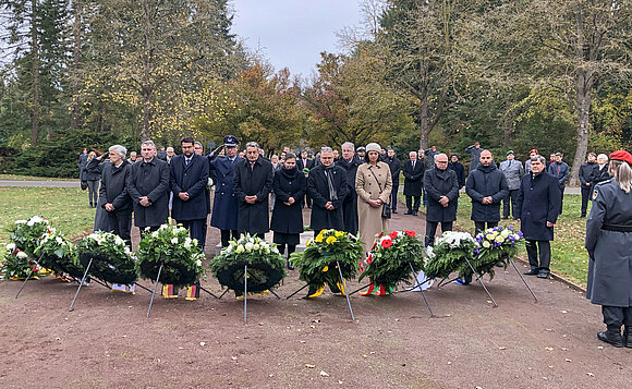 „Überall auf der Welt gibt es Kriegsgräberstätten, nicht nur Soldaten und Soldatinnen liegen auf ihnen begraben, sondern auch unzählige Zivilistinnen und Zivilisten“, erinnerte Dieter Steinecke, Vorsitzender des Volksbunds in Sachsen-Anhalt. Die Summe der Opfer übersteige das Vorstellbare. „Sie waren Menschen, die unverwechselbar waren – ihre Stimme, ihr Lachen, ihr Angesicht, Menschen, die leben wollten“, so Steinecke. Die Kriegsgräber vermittelten die bittere Lehre, dass sich die Ereignisse der Vergangenheit nicht wiederholen dürften.