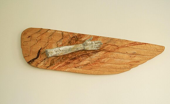 Anmerkung:One of six wooden crafts on the floors of the State Parliament building, called “Icarus’ wing”. Photo: Stefanie Böhme