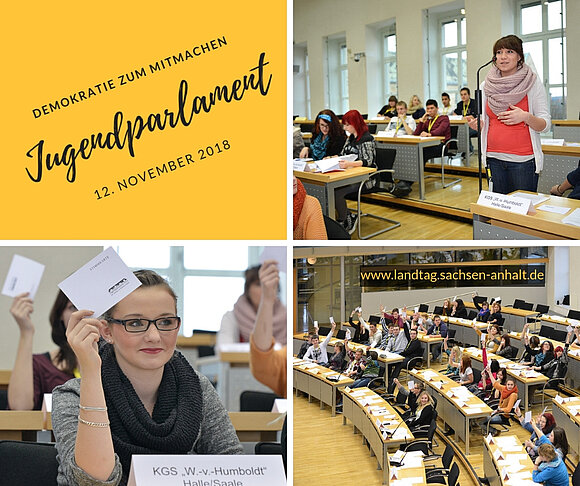 Am 12. November 2018 findet zum 13. Mal das Jugendparlament des Landtags von Sachsen-Anhalt statt. Landtagspräsidentin Gabriele Brakebusch hat 80 Schülerinnen und Schüler aus drei Sekundarschulen Sachsen-Anhalts eingeladen, über selbst gewählte Themen untereinander und mit Landtagsabgeordneten zu diskutieren.