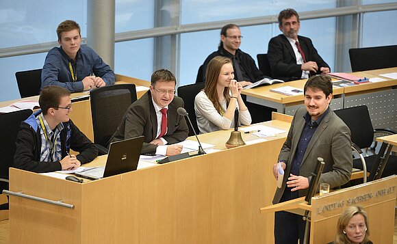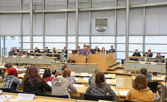 Seit 1997 tagt regelmäßig ein Jugendparlament im Landtag von Sachsen-Anhalt. Einen Tag lang haben Schülerinnen und Schüler aus drei Schulen Sachsen-Anhalts die Gelegenheit, in die Rolle einer Politikerin oder eines Politikers zu schlüpfen und im Parlament über selbstgewählte Themen zu beraten.