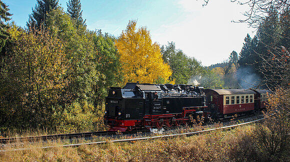 Die Harzer Schmalspurbahn auf ihrem Weg durch Wald und Flur. Foto: Gudrun Oelze