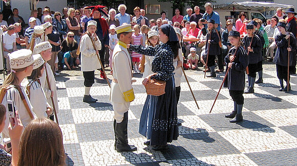 Das Lebendschachensemble Ströbeck führt im Ort regelmäßig Partien auf großem Spielfeld auf. Foto: Gudrun Oelze