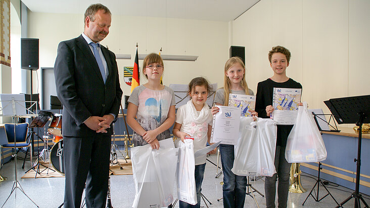 Aus Anlass des internationalen Aktionstags gegen den Einsatz von Kindersoldaten übergaben Schüler/innen aus Sachsen-Anhalt am Mittwoch, 15. Februar 2017, Landtagsvizepräsidenten Wulf Gallert zahlreiche rote Handabdrücke.