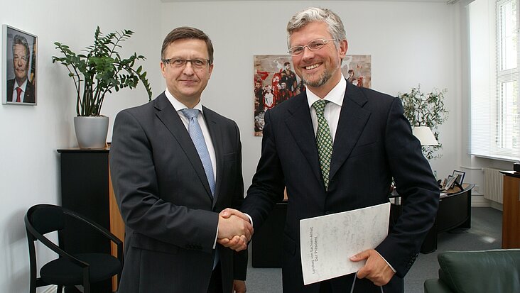 Landtagspräsident Dieter Steinecke empfing den neuen slowakischen Botschafter in der Bundesrepublik, S. E. Dr. Peter Lizák, zu einem ersten Kennenlernen im Landtag von Sachsen-Anhalt. Lizák, zuvor schon Botschafter in Wien, hat das Amt seit Juli 2015 inne.